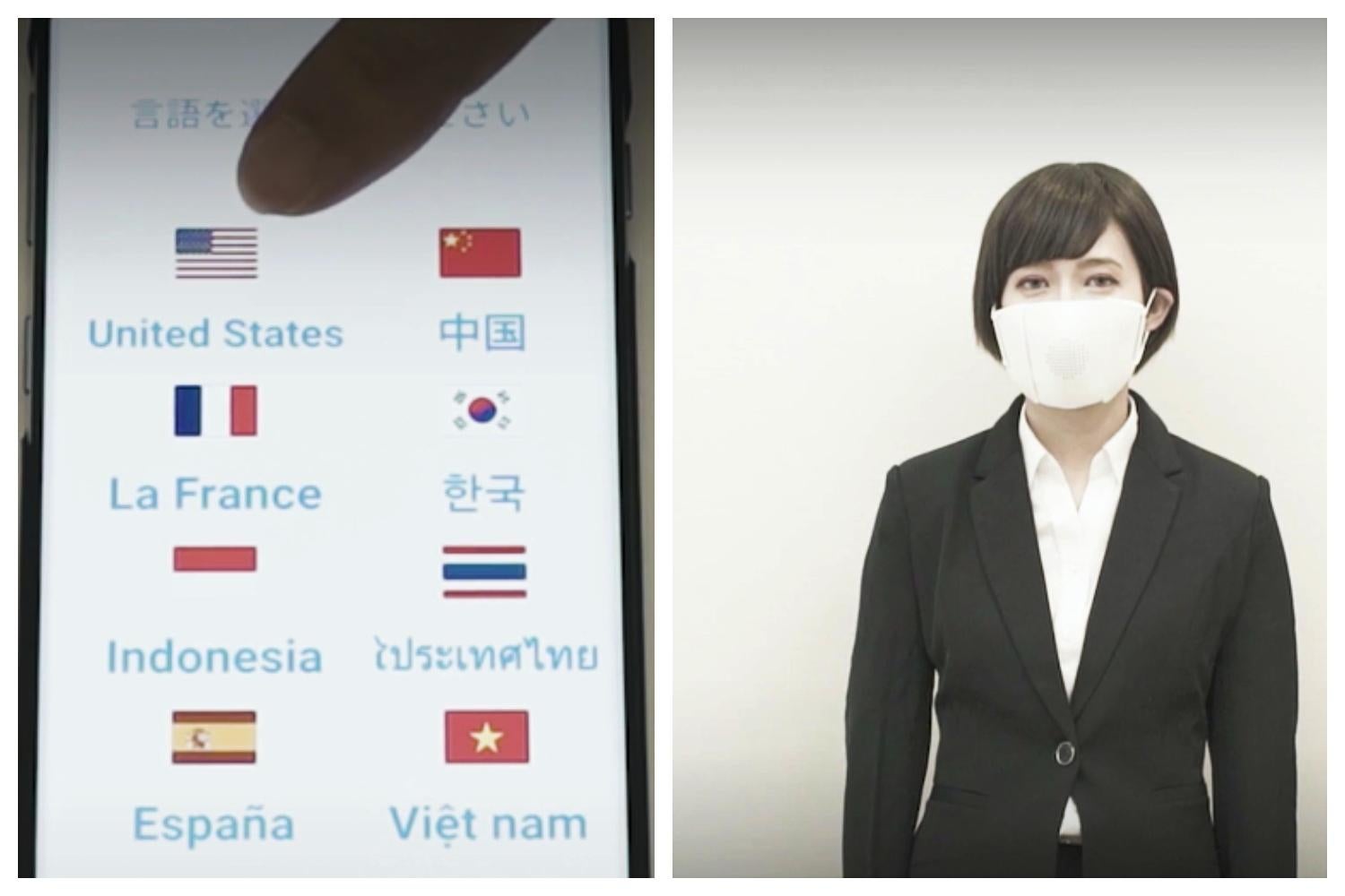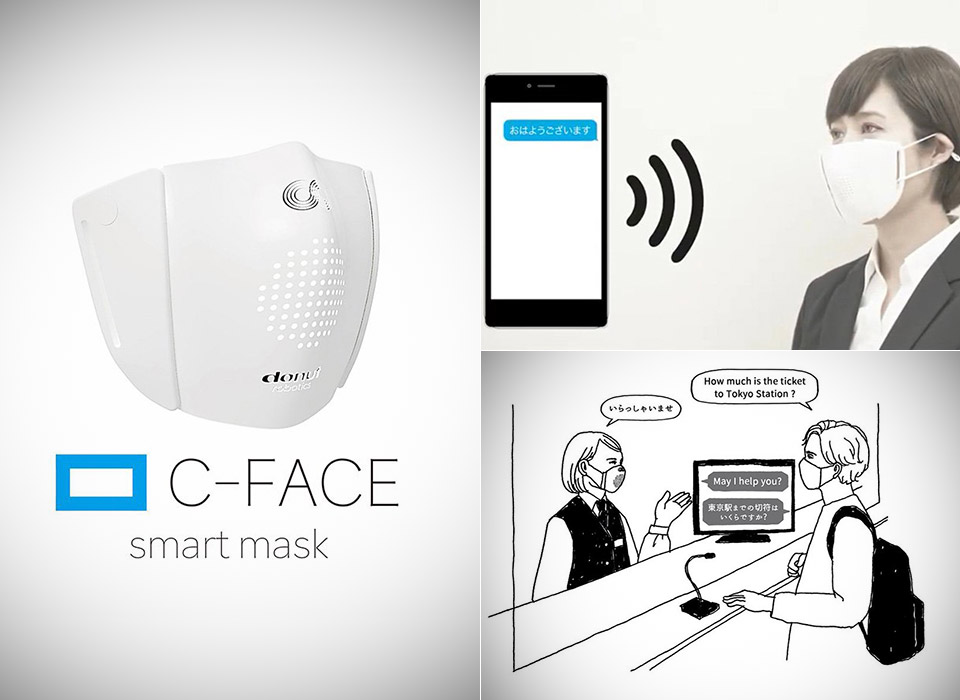 وربطت شركة التكنولوجيا اليابانية قناع الوجه ويدعى c-face smart mask بتطبيق على الجوال يمكنه ترجمة كلام المستخدم إلى ثماني لغات وتضخيم صوته أثناء الحديث، كما لديه خاصية تحويل الكلام إلى رسائل نصيةوكذلك إجراء المكالمات.