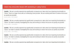 فيما واجه مستخدمو “كانفا” توقفًا مؤقتًا في خدمات التصميم المعتمدة على الحوسبة السحابية، بدأت المنصة في استعادة قدرتها التشغيلية تدريجيًا بعد تدخل الفرق التقنية.