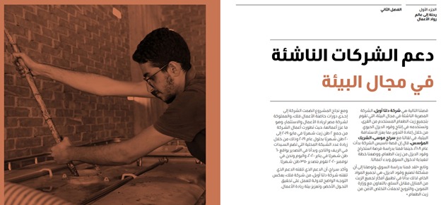 تعد شركة دلتا أويل إحدى الشركات الناشئة التي استفادة من حاضنة الأعمال “فلك”، المملوكة لشركة مصر لريادة الأعمال والاستثمار.