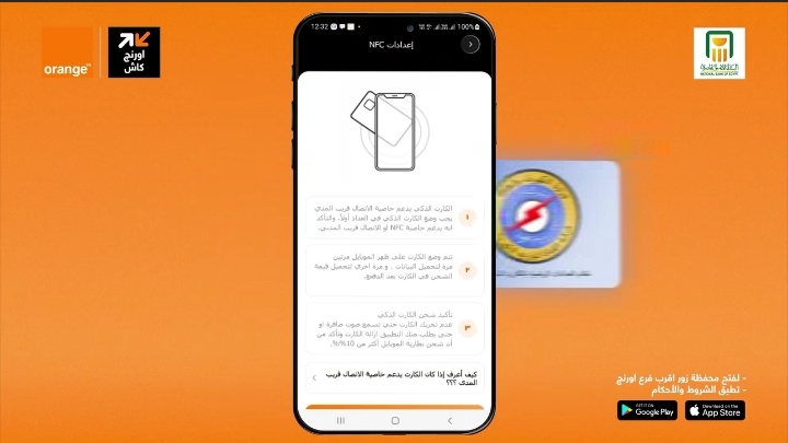 - وضع كارت الكهرباء على ظهر الهاتف المحمول المدعوم بخاصية NFC.