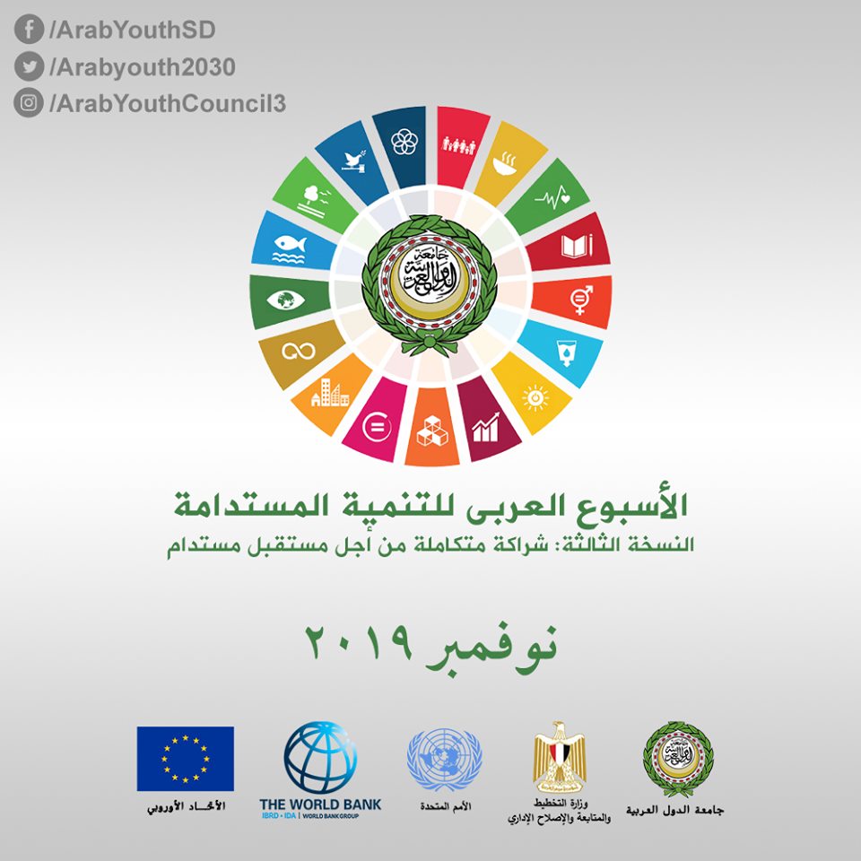 تعتزم جامعة الدول العربية عقد النسخة الثالثة من الأسبوع العربي للتنمية المستدامة بالتعاون مع وزارة التخطيط والمتابعة والإصلاح الإداري بجمهورية مصر العربية والبنك الدولي، والأمم المتحدة، والاتحاد الأوروبي، وذلك خلال الفترة من 3 إلى 6 نوفمبر 2019.