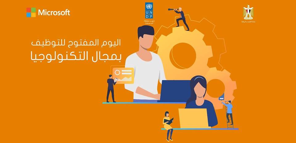 فرصة لكل الشباب المتخصصين فيمجالات التكنولوجيا ولمن يبحث عن فرص عمل بتخصصهم، سيقام يوم توظيف متخصص في التكنولوجيا بالقاهرة، وذلك بالتعاون مع وزارة الشباب والرياضة، والبرنامج الإنمائي للأمم المتحدة، وشركة مايكروسوفت مصر.